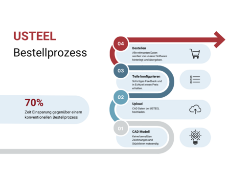 Dank unserer smarten Software und dem intuitiven Bestellprozess bietet dir USTEEL eine enorme Zeitersparnis bei der Bestellung deiner Blechteile. Mit USTEEL fällt das Erstellen von Zeichnungen und Stücklisten weg. Du benötigst nur das CAD-Modell deines Blechteils oder der kompletten Baugruppe. Unsere Software erkennt automatisch alle produzierbaren Komponenten und gibt dir direktes Feedback zu problematischen Teilen. Du konfigurierst ganz einfach deine Blechteile und erhältst in Echtzeit einen Preis.